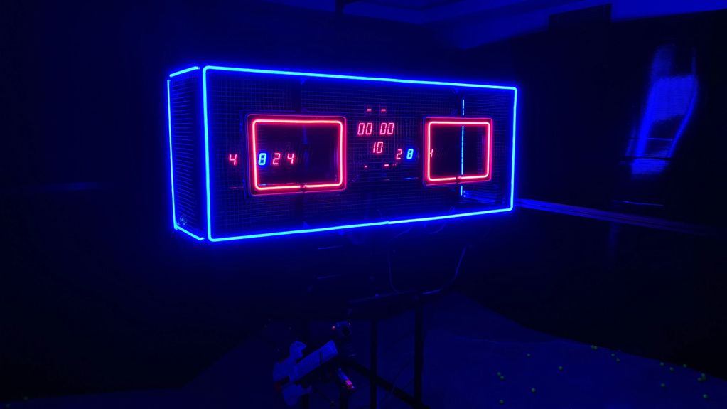 The difficulty of the game can be increased by standing further away from the target and/or increasing the speed settings.